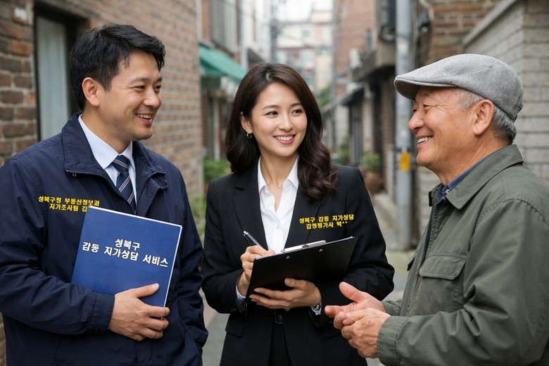 [부자동네타임즈=이병도 기자] 서울 성북구(구청장 이승로)가 2026년도 개별공시지가 의견제출·이의신청 기간에 담당 공무원과 감정평가사가 구민이 원하는 시간과 장소로 직접 찾아가 맞춤 상담을 제공하는 ‘감동 지가상담 서비스’(감정평가사 동행 지가상담 서비스)를 운영한다.