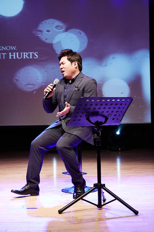 △ 가수 김조한이 11일 서울 강남구 청담동 일지아트홀에서 정규 6집 앨범 '원스 인 어 라이프타임(O nce in a Lifetime)' 음악 감상회를 열고 노래하고 있다.<사진제공=소울패밀리프로덕션> |