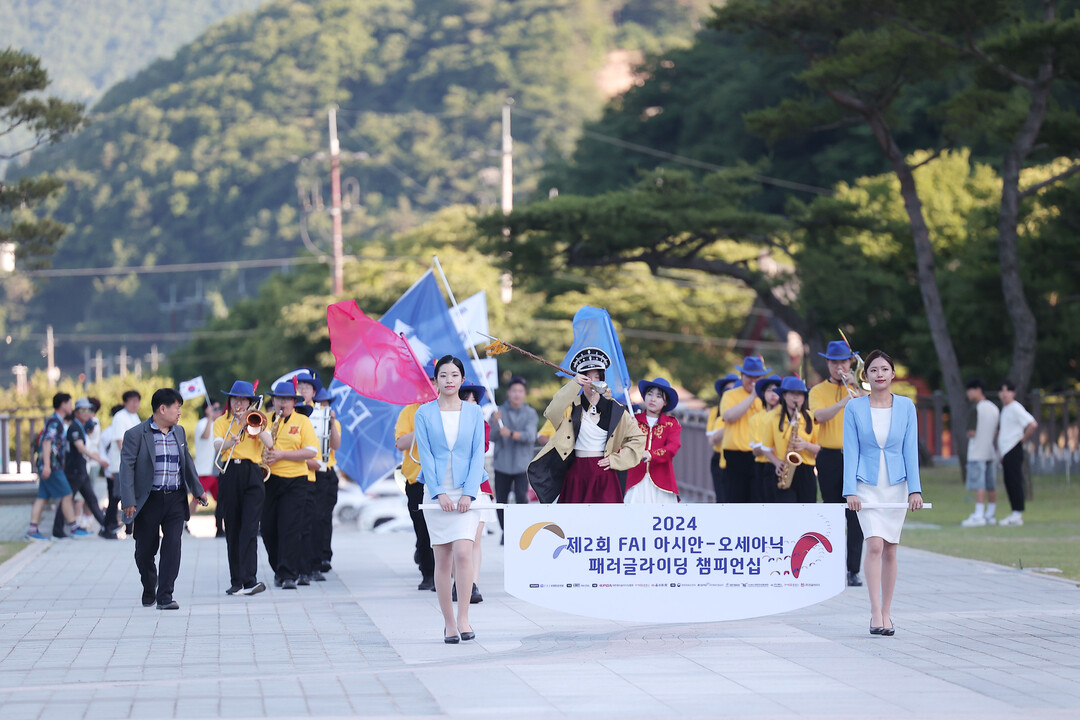 [부자동네타임즈 = 김인수 기자] 제2회 FAI 아세안-오세아닉 패러글라이딩 챔피언십 개막식이 6일 오후 5시 30분 문경새재 야외공연장에서 한국 중국 일본 호주 등 9개국 115명의 선수가 참가한 가운데 화려한 개막을 알렸다.