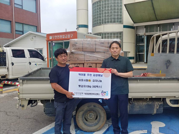 [부자동네타임즈 김인수기자] 고양특례시 덕이동은 지난 28일, 주민 김성태님이 상반기에 정성껏 경작해온 감자 10kg·40상자를 지역 내 어려운 이웃에게 전달해달라며 덕이동에 기부했다고 밝혔다.