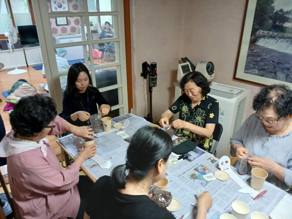 공예교실은 호수마을 3단지 경로당에서 진행했으며, 프로그램은 △냅킨을 이용한 부채 만들기 △전통나비 팔찌 만들기 활동 등의 공예활동으로 구성되었다.