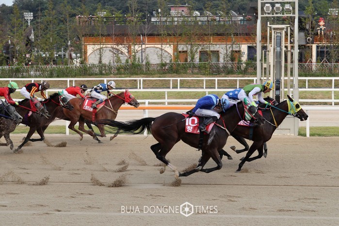 [부자동네타임즈 이채봉 기자]그야말로 손에 땀을 쥐는 접전! 5세 암말 인디언스타가 2년 연속 제주특별자치도지사배 우승의 대업을 달성했다. 인디언스타는 9월 3일(일) 렛츠런파크 서울에서 열린 제5회 제주특별자치도지사배(제9경주, 3세 이상 암말, 1400m)에서 목차로 브라이트스타를 따돌리며 가장 먼저 결승선을 통과했다. 지난해 10월에 이어 임성실 기수와 재차 호흡을 맞춰 승리를 차지한 것이라 기쁨도 클 수밖에 없었다.