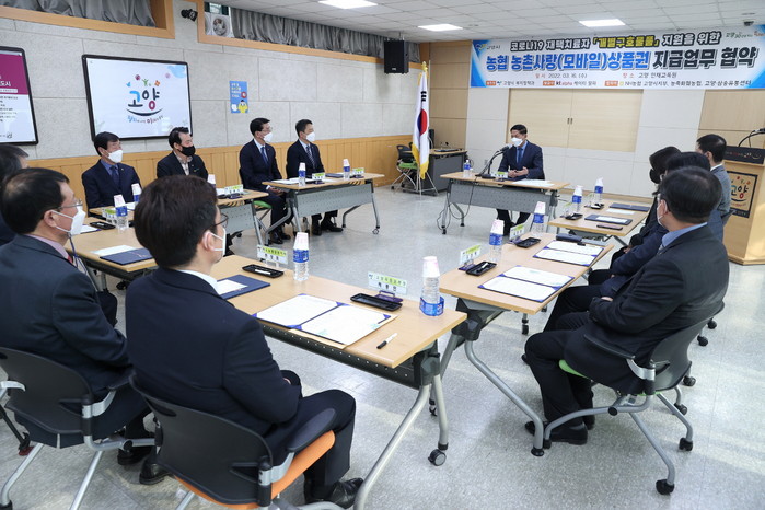 이를 위해 고양시는 모바일상품권 발급사인 케이티알파와 NH농협 고양시지부, 관내 농축화훼농협, 고양·삼송유통센터와 협력을 약속하고, 지난 15일 농협 농촌사랑(모바일)상품권 지급을 위한 업무 협약식을 가졌다.