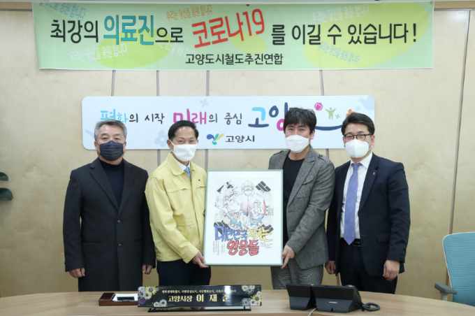 [부자동네타임즈 김인수기자] 고양시(시장 이재준)는 지난 3월 3일 고양시청에서 고양시 취약가구의 코로나 19 감염 예방을 위해‘고양도시철도추진연합 코로나 19 감염 예방을 위한 성금전달식’을 가졌다고 밝혔다.