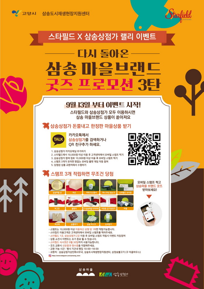 [부자동네타임즈 김인수기자] 고양시가 13일부터 스타필드 고양, 삼송상점가 상인회, 삼송도시재생현장지원센터와 함께 ‘삼송 도시재생 상생협력사업’의 일환으로 ‘스타필드×삼송 랠리 이벤트’를 추진한다.