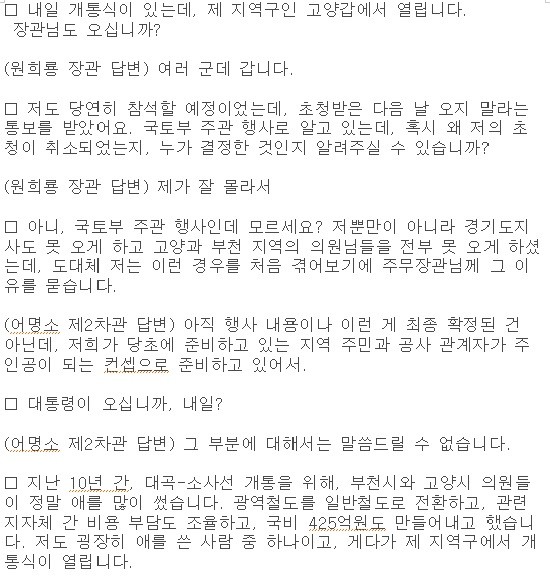이번 개통식 준비 과정을 보면 국토부와 고양시 관련 공무원들과 주무관들의 업무 처리가 어떻게 이루어 지는지 짐작이 가는 사건이다.