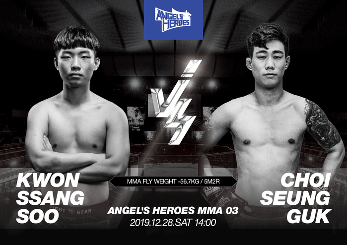 AFC(엔젤스파이팅챔피언십)는 오는 28일 오후 2시 서울시 강남구 역삼동에 위치한 엔젤스 히어로즈 전용관에서 ‘엔젤스 히어로즈 MMA 03’을 개최한다. 1경기는 권쌍수와 최승국의 MMA 플라이급 -56.7kg이다.