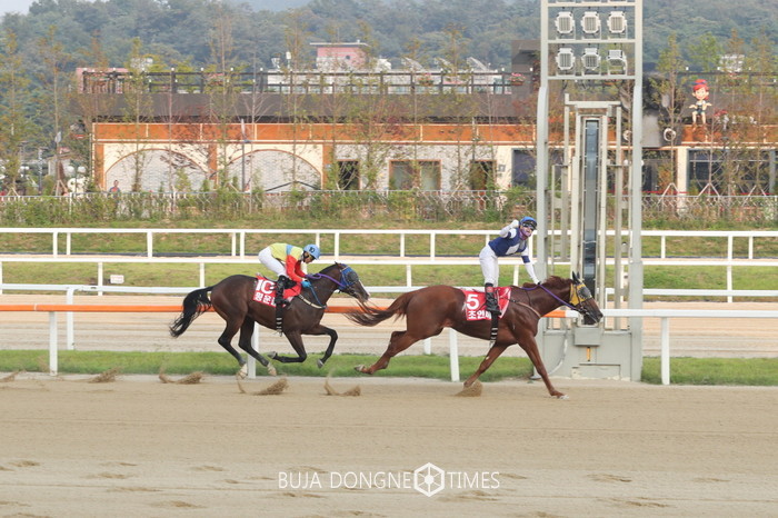 [부자동네타임즈 신동현 기자]24일(일) 한국마사회(회장 이양호) 렛츠런파크 서울에서 열린 제11회 ‘경기도지사배’(국OPEN, 1200m, 2세)에서 ‘초인마’(한국, 2세, 수, R41)가 결승선 직전 역전에 성공하며 최강 국산 2세마로서 입지를 다졌다. '초인마‘는 이번 경주 출전마 중 유일한 ’메니피‘의 자마로 국내 최고로 평가받는 씨수마의 혈통을 입증했다.