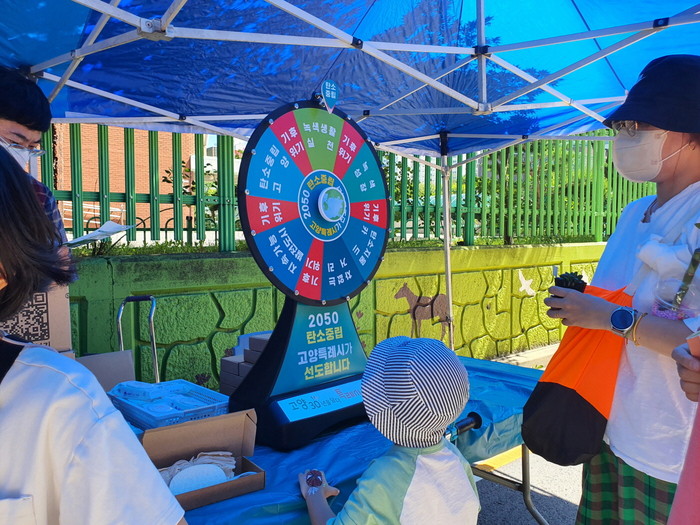 이번 행사에서는 탄소중립 홍보관을 비롯해, 고양시자원봉사센터의 “일회용품 줄이기 실천 나무 만들기”와 덕양 햇살 icoop 생협 “지구를 살려요! NO 플라스틱!!”홍보 캠페인 등 탄소중립을 위한 부스가 운영되어 시민들의 관심을 끌었다. 특히 자전거 페달을 밟아 선풍기를 돌리는 친환경 자가발전 선풍기 체험은 아이들에게 인기 만점이었다.