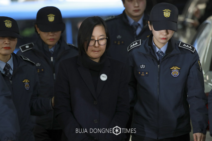 삼성 특혜지원과 관련 구속된 최순실 조카 장시호가 22일 서울 강남구 대치동 '박근혜 정부의 최순실 등 민간인 국정농단 사건 수사 특별검사팀' 사무실로 소환되고 있다.
