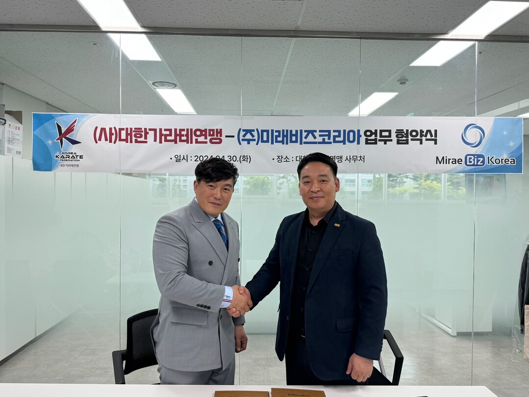 [부자동네타임즈 = 김인수 기자] 대한가라테연맹(회장 강민주)는 지난 4월 30일 연맹 사무처에서 주식회사 미래비즈코리아와 업무협약을 체결했다고 밝혔다.