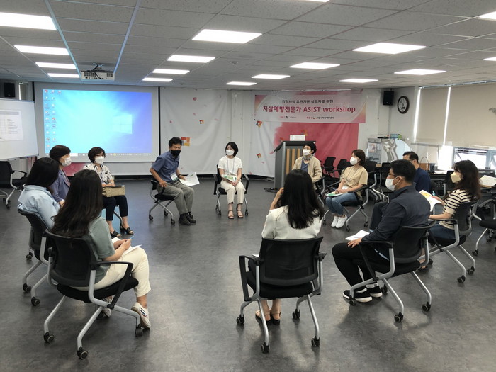 센터는 지역사회 내 자살고위험군을 대면할 수 있는 다양한 기관, 대표적으로 경찰·소방 등 응급위기대응기관, 사회복지시설, 병‧의원 등의 실무자들이 자살예방전문가가 될 수 있도록 ASIST 워크숍을 매년 주최하고 있다.