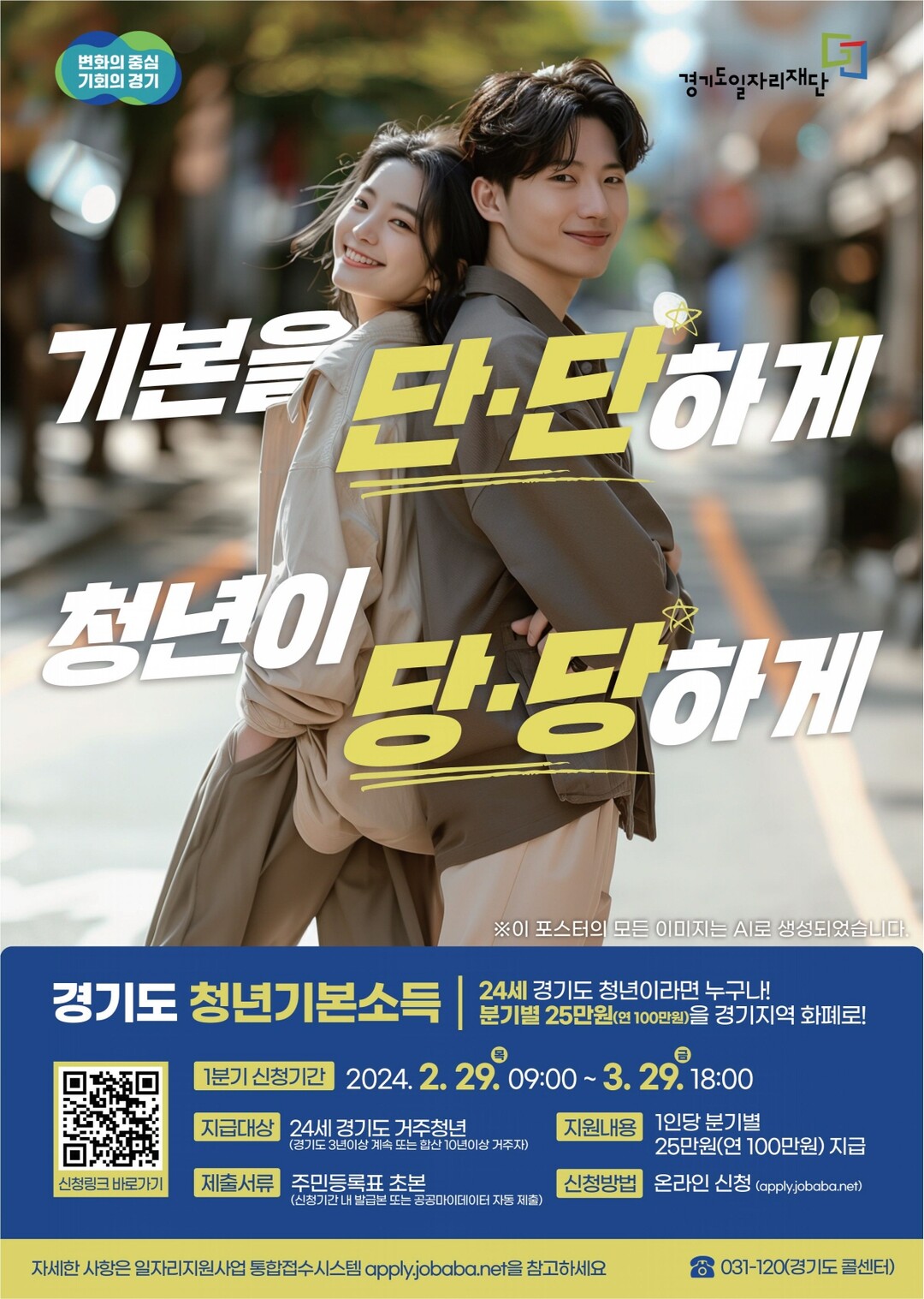 청년기본소득은 신청일 기준 고양시에 주민등록을 두고 있는 청년 중 경기도 거주기간이 최근 3년 이상 계속(또는 합산 10년 이상)인 24세 청년에게 분기별 25만원(최대 4분기 지원)을 카드형 고양시 지역화폐(고양페이)로 지급하는 청년복지 정책이다.