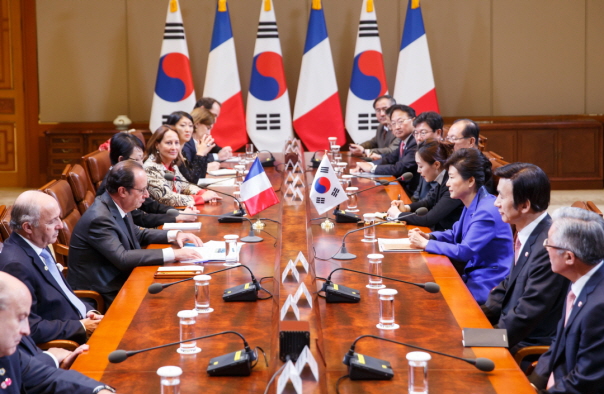 이날 회담에 프랑스측은 로랑 파비우스 외무국제개발부 장관, 세골렌 루와이얄 환경지속개발에너지부 장관, 플뢰르 펠르랭 문화통신부 장관 등이 자리를 함께했다.