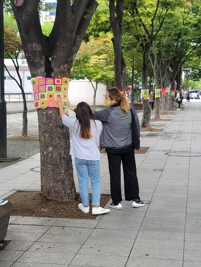 꽃우물마을축제기획단 정미향 단원은 “손뜨개를 처음해보지만 뜨개실의 화려한 빛깔로 마을을 환하게 빛춘다는 의미가 너무 좋아 도전하게 되었다. 끝내고 나니 정말 뿌듯하고 마을 활동에 대해 관심을 갖게 됐다” 고 말했다.