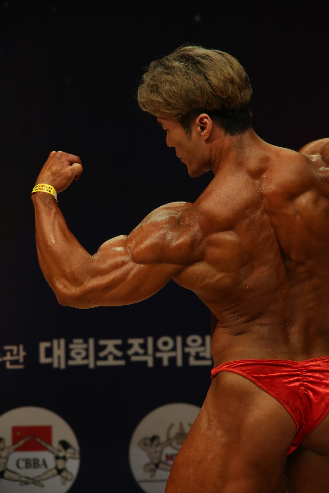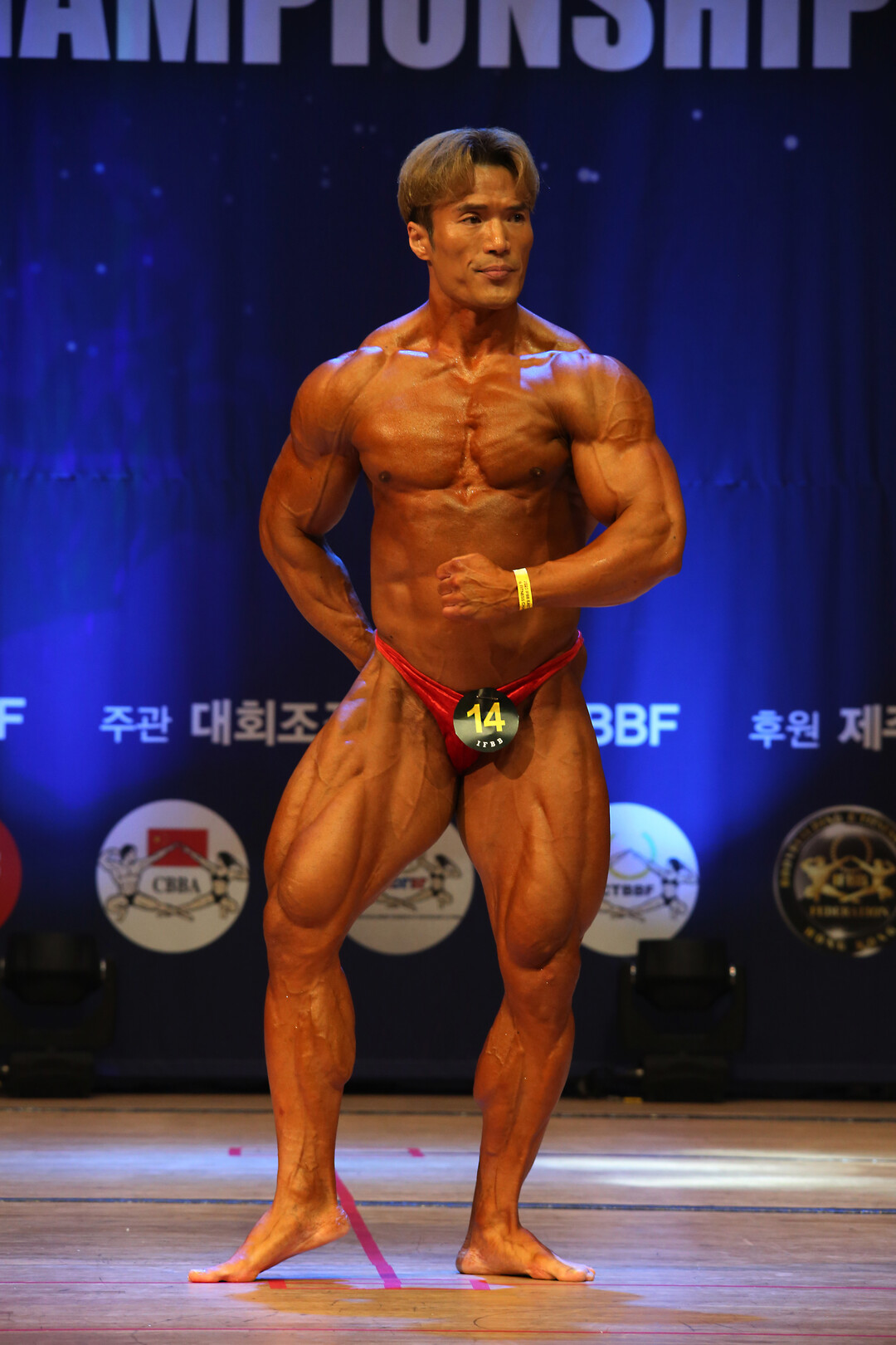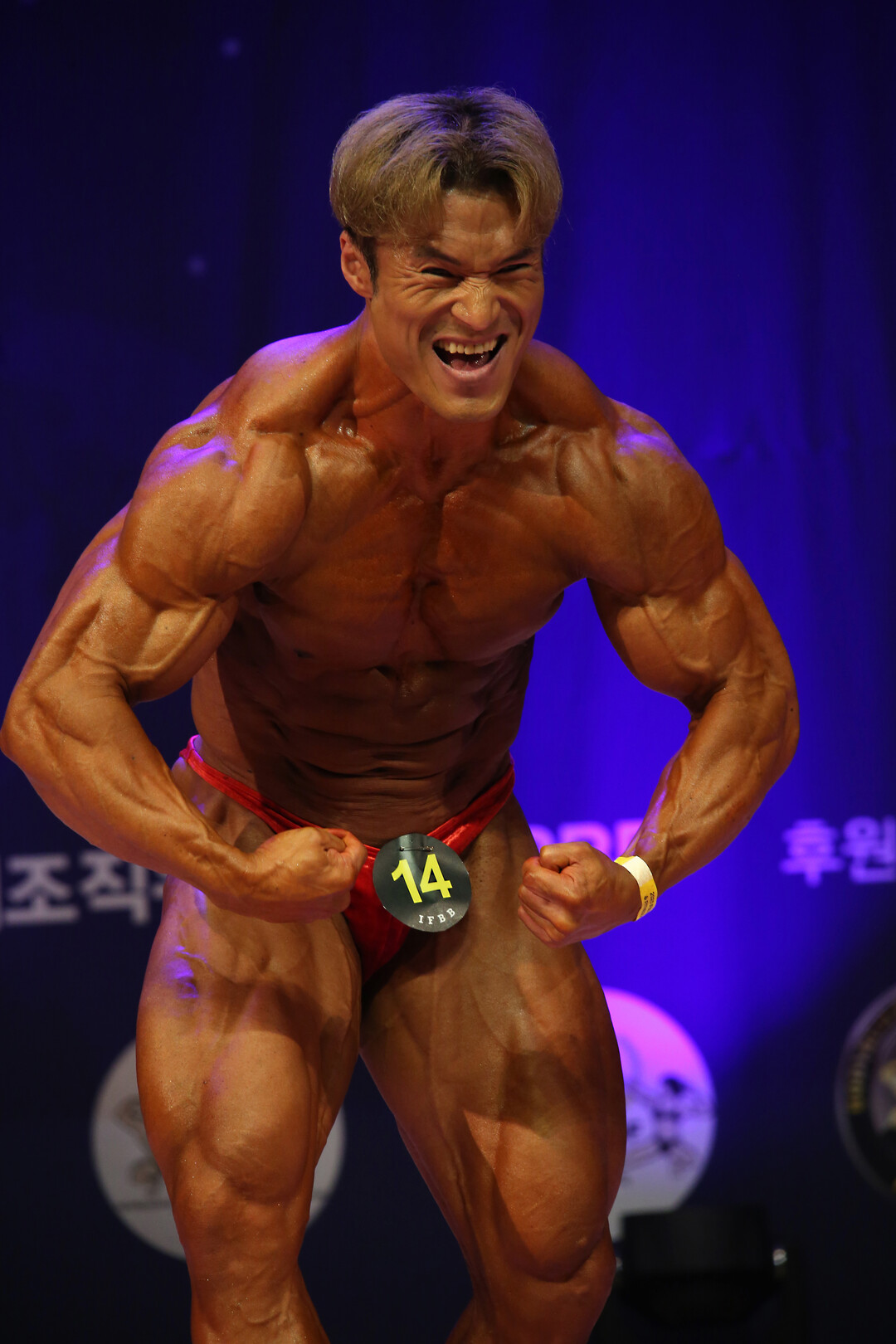 [사진설명] 안창훈 선수는 무대에서 자신의 육체미(肉體美)을 뽐내고 있다.