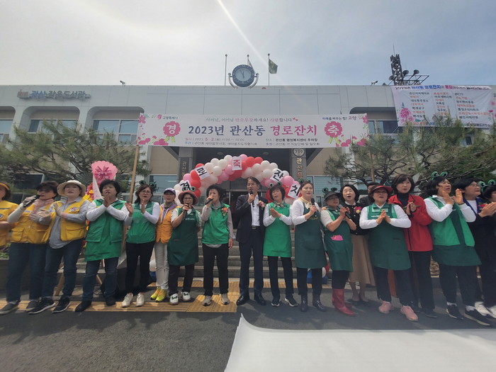 이번 경로잔치에서는 관내 장수 어르신과 효행시민, 선행시민의 표창 수여식이 있었으며, 관산동 새마을부녀회에서 음식과 다과를 정성껏 마련하여 대접했다.