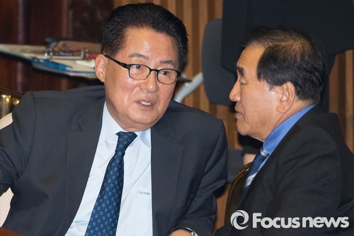 | △ 박지원(왼쪽) 새정치민주연합 의원과 이재오 새누리당 의원이 이달 14일 오전 서울 여의도 국회 본회의장에서 대화하고 있다. 박철중 기자 cjpark@focus.kr |