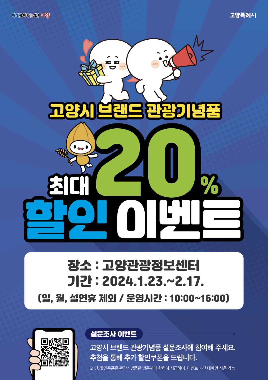 [부자동네타임즈 = 김인수 기자] 오는 1월 23일부터 2월 17일까지 고양관광정보센터에서 관광기념품 할인판매 및 소비자 설문조사 이벤트를 실시한다고 22일 밝혔다.