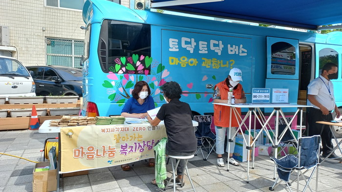 [부자동네타임즈 김인수기자] 고양시 대화동행정복지센터(동장 김학배)는 지난 9일 대화동 가와지광장에서 지역주민을 대상으로 ‘찾아가는 복지상담소’와 연계해 ‘찾아가는 정신건강상담소 토닥토닥버스’를 운영했다.