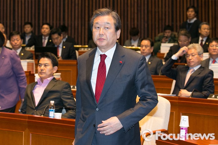 | △ 김무성 새누리당 대표가 14일 오전 서울 여의도 국회에서 열린 의원총회에 참석해 단상으로 향하고 있다. <사진제공=포커스뉴스> |