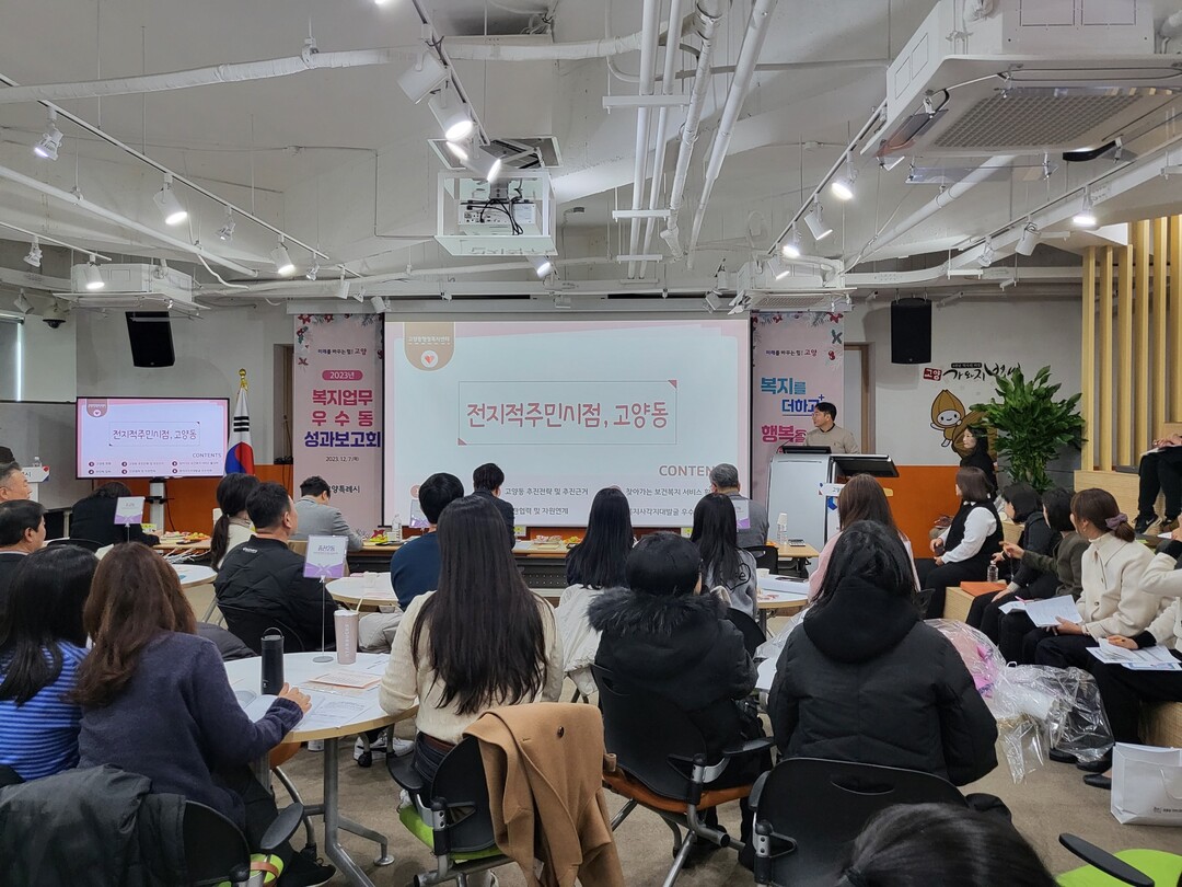 [부자동네타임즈 = 김인수 기자] 지난 7일 고양시 44개 동 지역사회보장협의체 위원, 동 복지 업무 담당자 등 150여 명이 참여한 가운데 ‘2023년 복지업무 우수 동 성과보고회’를 개최했다. 이날 최우수 동으로 고봉동이 선정됐다.