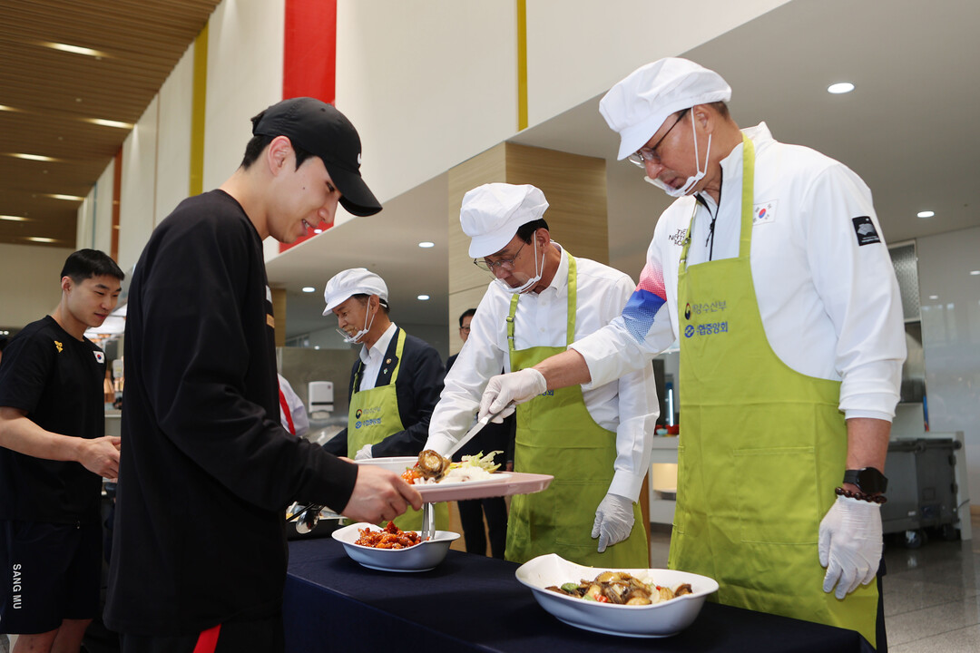 장재근 국가대표선수촌장은 “해양수산부와 수협중앙회가 파리올림픽을 앞두고 우리 선수들을 위해 수산물을 제공해 주셔서 감사하다”며, “대한체육회는 선수들이 최상의 컨디션에서 대회에 임할 수 있도록 최선을 다하겠다”고 전했다. 이에 노동진 수협중앙회장은 “수산물이 선수들의 건강과 컨디션 유지에 큰 도움이 되기를 바란다”고 화답했다.