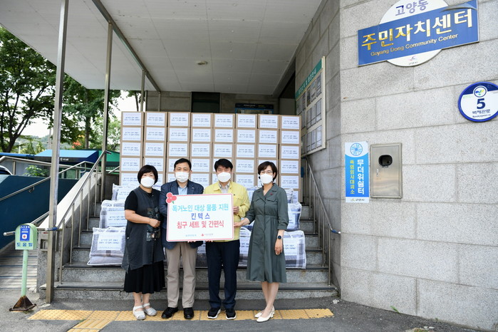 [부자동네타임즈 김인수기자] 고양시 덕양구 고양동행정복지센터(동장 김명섭)는 지난 20일 전시컨벤션센터 킨텍스(대표이사 이화영)에서 복지사각지대 홀몸 어르신들을 위해 써달라며 컵밥 세트 50개(약 80만원 상당)와 이불 세트 50개(약 250만원 상당)를 기탁했다고 밝혔다.