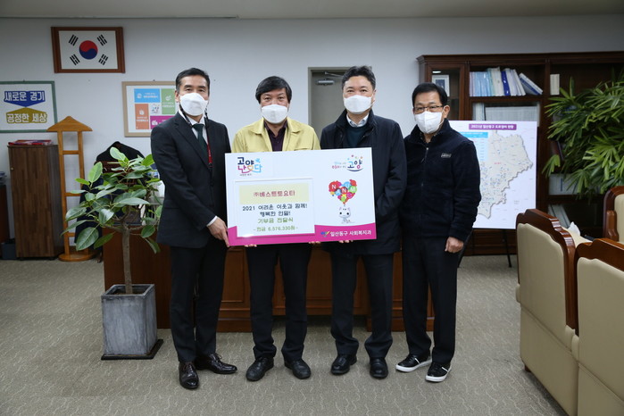 정영안 일산동구청장은 “어려운 이웃을 돕기 위해 회사 임직원들이 성금 기부를 통하여 사회공헌 활동을 하는 것에 감사드린다”며 “앞으로도 더 많은 단체와 개인이 어려운 이웃을 위한 후원활동에 참여해 함께하는 기부문화가 정착될 수 있도록 노력하겠다”고 말했다.