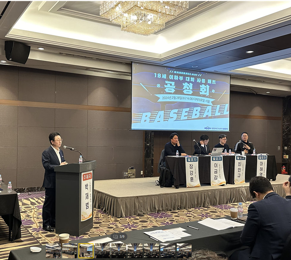 [부자동네타임즈 = 김인수 기자] 대한야구소프트볼협회(회장 이종훈, KBSA)는 지난 28일 ‘18세 이하부(고등) 대회 사용 배트 관련 공청회’를 개최하고, 공식 선정 인원의 발표와 참석자들의 다양한 의견을 수렴하는 자리를 마련해 성공적으로 마무리했다.