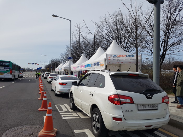 고양시는 코로나19 감염을 최소화하면서도 판로가 막혀 어려운 농가도 돕고, 시민들에게 질 좋고 우수한 우리 지역의 신선 농산물을 제공하기 위해 ‘드라이브 스루 안심판매장’을 개발했다.