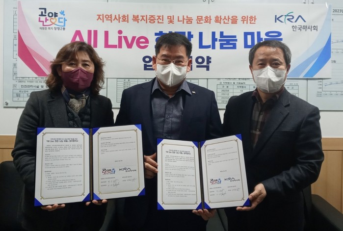 [부자동네타임즈 김인수기자] 고양특례시 장항2동지역사회보장협의체(공공위원장 박인석, 민간위원장 이승희)는 지난 13일 한국마사회 일산지사(지사장 이남용)와 ‘All Live 희망 나눔 마을’ 업무협약을 체결했다.