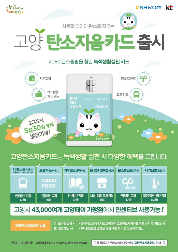 그밖에 카드 발급 및 사용처, 포인트 적립 등 자세한 사항은 고양 탄소지움카드 앱 또는 KT착한카드 콜센터에서 확인 할 수 있다.