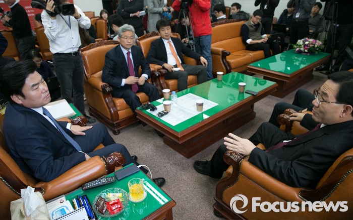 (서울=포커스뉴스) 원유철 새누리당 원내대표과 의원들이 4일 오후 서울 여의도 국회에서 테러방지법 입법 논의와 관련 대책회의를 하고 있다. 오른쪽부터 시계방향으로 주호영 국회 정보위원장, 원 원내대표, 이철우 정보위 여당 간사, 유의동 원내대변인.