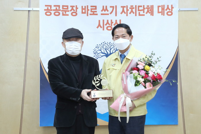 (사)우리글진흥원(원장 손수호)에서 선정하는 ‘공공문장 바로쓰기 자치단체 대상’은 일선 행정에서 바르고 쉬운 공공문장을 사용한 자치단체에 수여하는 상으로 지난 2013년 시작됐다.