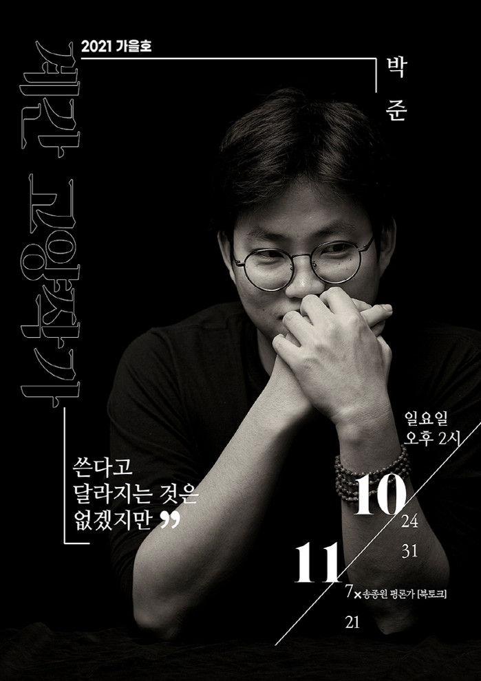 [부자동네타임즈 김인수기자] 고양시 아람누리도서관이 계절마다 고양시 거주 작가를 발굴· 소개하는 계간 고양작가의 2021년 가을편으로 박준 시인을 초청해 전시와 북토크, 강연을 개최한다.