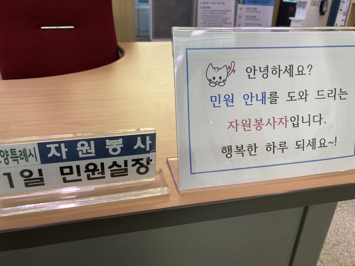 구청 관계자는 “민원실장들이 자원봉사자로 구성된 만큼 민원 응대 시, 누구보다 시민의 입장에서 도움을 드릴 수 있을 것으로 기대한다.”라며, “민원실을 방문하는 시민들이 불편함이 없도록 민원서비스 개선을 위한 노력에 최선을 다하겠다.”라고 전했다.