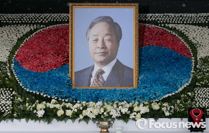| △ 지난 26일 오후 서울 여의도 국회에서 엄수된 고(故) 김영삼 전 대통령 영결식에 고인의 영정사진과 무궁화대훈장이 놓여 있다. <사진제공=포커스뉴스> |