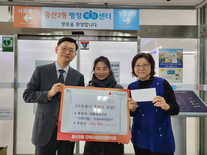[부자동네타임즈 김인수기자] 고양특례시 중산2동 행정복지센터는 지난 2일(목) 관내 센트럴더포레 아파트 환경을 생각하는 동아리 ‘미세없는 실내놀이터 만들기’에서 저소득층 가정을 위해 써달라며 303,000원을 기부했다고 밝혔다.
