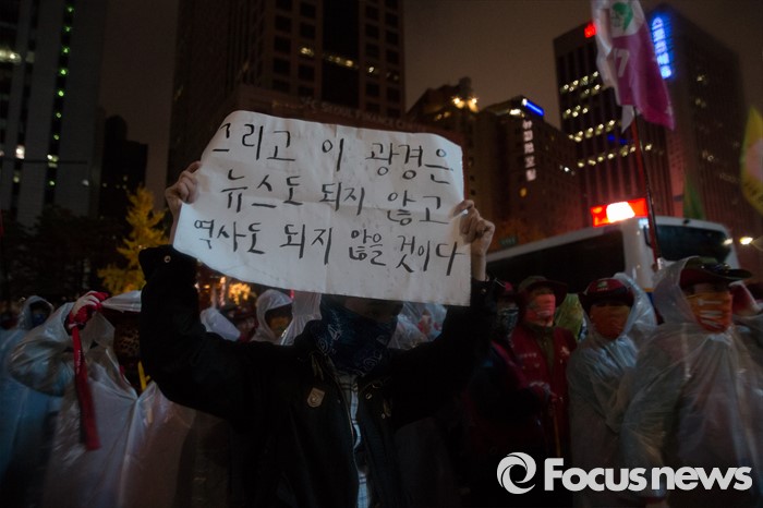 | △ 지난 14일 오후 서울 종로구 세종대로에서 열린 정부 규탄 '민중총궐기 투쟁대회'에서 한 학생을 피켓시위를 벌이고 있다. <사진제공=포커스뉴스> |