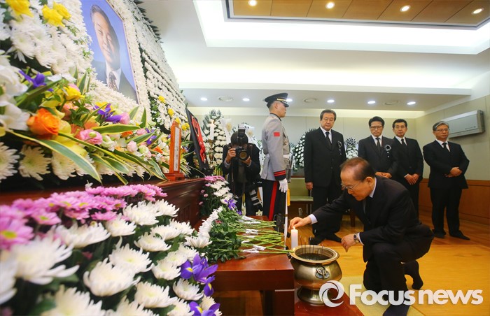 | △ 김영삼 전 대통령 서거 이틀째인 23일 이회창 전 국무총리가 서울 종로구 서울대병원 장례식장에 마련된 고 김영삼 전 대통령 빈소를 찾아 조문하고 있다. 사진공동취재단 photo@focus.kr |