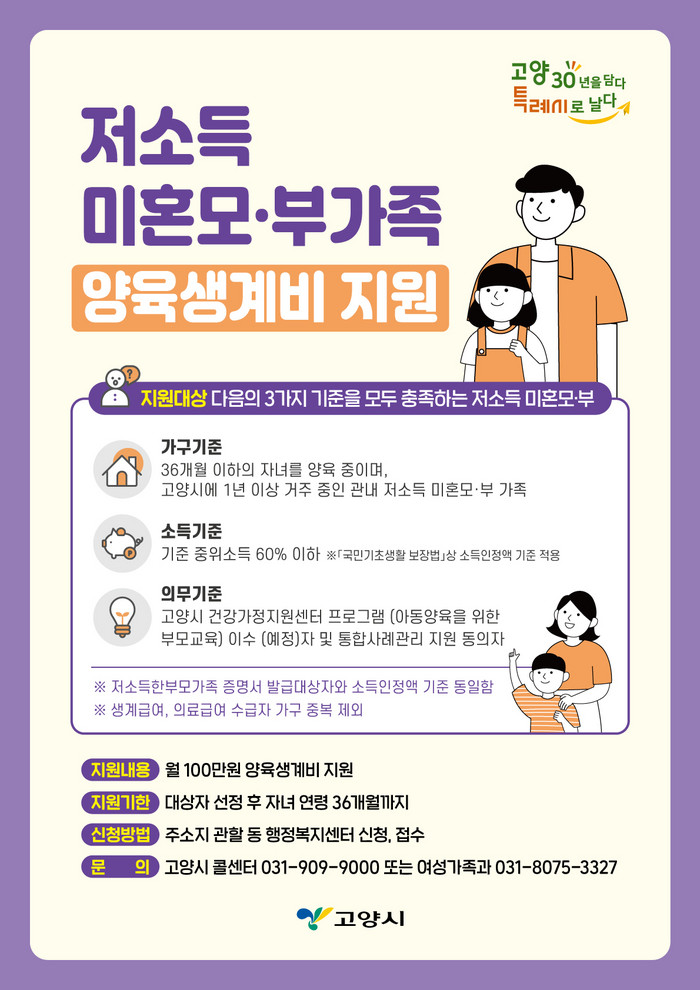 [사진설명] 고양시 저소득 미혼모부·가족 양육생계비 지원 사업 안내 포스터.