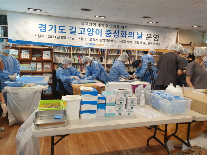 [부자동네타임즈 김인수기자] 고양시 농업기술센터는 지난 23일 길고양이 개체 수 조절을 위해‘제1회 길고양이 중성화의 날’행사를 추진, 길고양이 51마리에 중성화 수술을 실시했다.