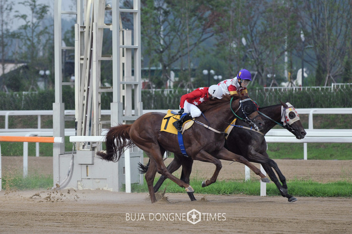[부자동네타임즈 이채봉 기자]김경민 마주의 '소통시대(6세, 거세마, 한국, 레이팅 101)'가 드디어 일을 냈다. 하재흥 조교사(35조)의 훈련으로 우승을 담금질 해온 '소통시대'는 23일(일) 한국마사회(회장 이양호) 렛츠런파크 서울에서 열린 제8회 서울경제신문배(제10경주, 1등급, 1800m)에서 막판 짜릿한 역전극을 연출하며 가장 먼저 결승선을 통과했다.