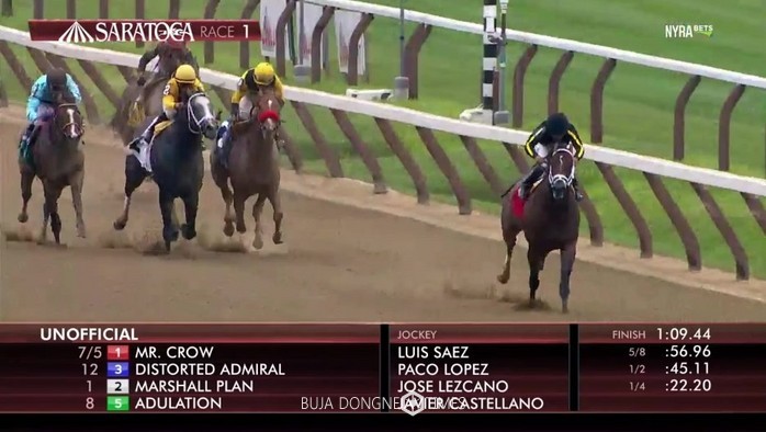 이번 대회 우승에 앞서 Mr. Crow는 지난 6월 벨몬트 파크(Belmont Park)에서 데뷔전을 가졌다. 바깥 게이트(8번)를 부여받는 등 악재가 겹쳤음에도 목차 준우승을 기록했던 만큼, 7월 경기에서도 관계자와 팬들이 거는 기대는 낮지 않았다. 배당률이 1, 2위를 다퉜다는 게 이를 증명한다. 물론, 그렇다한들 마냥 마음을 놓기에는 경쟁자들의 실력도 막강했다. 데뷔전에서 미숙한 출발로 우승을 놓쳤던 부분도 반드시 극복해야 될 요소였다.