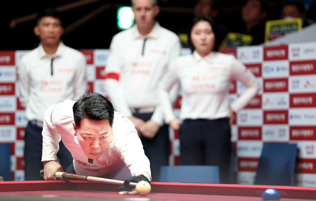 이어 3세트 단식서는 조재호가 6이닝만에 무라트 나지 초클루(튀르키예)를 15:9로 물리쳤다. 이어 아빠와 딸의 맞대결로 관심을 모은 4세트서는 ‘딸’ 김보미가 오성욱과 호흡을 맞춰 김진아와 짝을 이룬 ‘아빠’ 김병호를 9:2(5이닝)로 꺾고 세트스코어 4:0 승리를 완성했다.