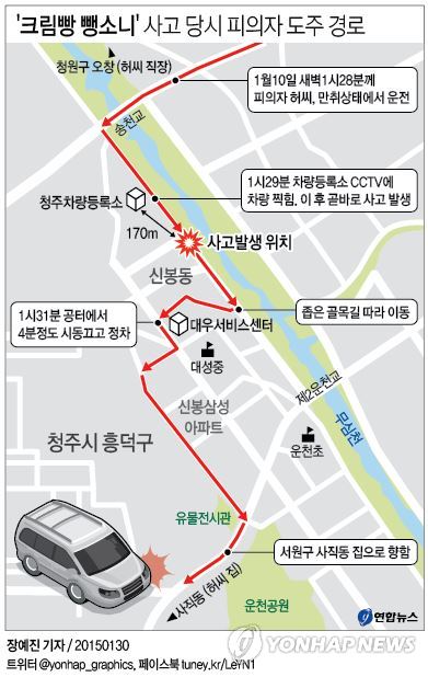 (청주=연합뉴스) 심규석 기자 = '크림빵 아빠' 강모(29)씨를 치어 숨지게 한 허모(37)씨는 사고를 낸 뒤 큰 길이 아닌 골목길을 택해 귀가했다.