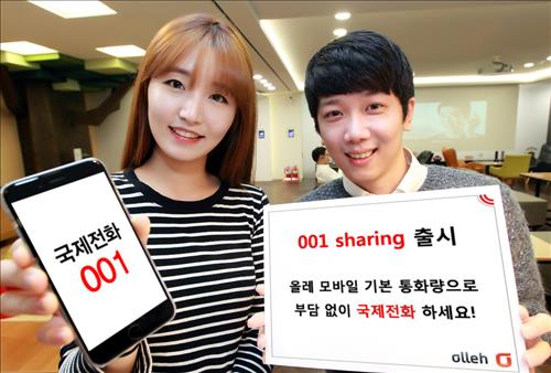 (서울=연합뉴스) 전성훈 기자 = KT[030200]는 기본 음성통화량 한도 내에서 국제전화를 저렴하게 이용할 수 있는 모바일 부가서비스 '001 쉐어링'을 출시했다고 1일 밝혔다.