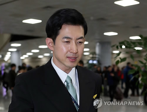 | △ 업무복귀한 '땅콩 회항' 박창진 사무장 (부산=연합뉴스) 조정호 기자 = '땅콩 회항' 사건 당시 조현아 전 대한항공 부사장에 의해 비행기에서 쫓겨났던 박창진 사무장이 1일 업무에 복귀했다. 박 사무장이 이날 50여 일간의 병가가 끝내고 출근해 부산-일본 나고야 노선 대한항공 비행기에 승무원으로 근무한 뒤 김해공항을 나서고 있다. |