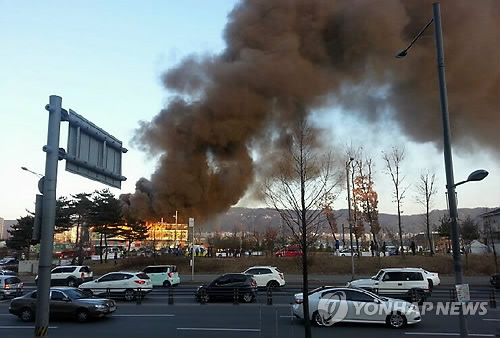 | △ 양주 마트서 가스 폭발 화재 (양주=연합뉴스) 권숙희 기자 = 1일 오후 경기도 양주시내의 한 마트에서 가스 폭발 추정 화재가 발생해 검은 연기가 일대에 퍼지고 있다. 2015.2.1 suki@yna.co.kr |